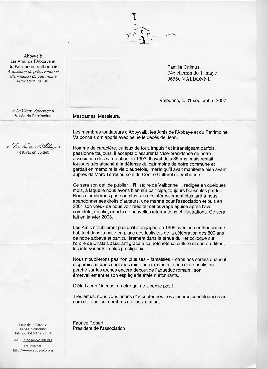 Jean Onimus est arrivé à Valbonne par sa femme, Marinette Bousquet. Il a tout de suite aimé ce petit village et ensemble ils ont décidé que leur retraite serait valbonnaise.