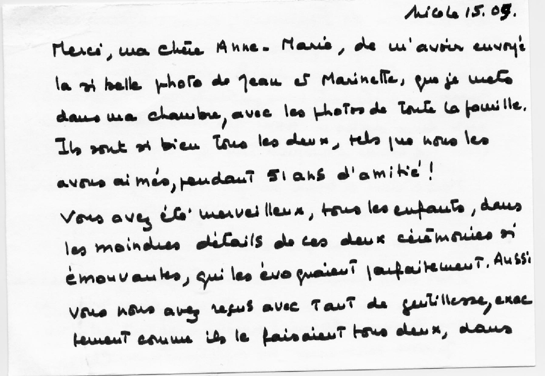 Christiane Dupuy faisait partie du cercle rapproché de Jean Onimus. Son témoignage nous est très précieux.