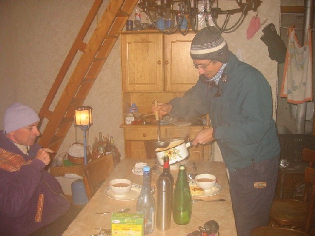 Notre réunion dans le petit chalet du Boisset fut comme d'habitude extrêmement sympa et nous avons fait fête à la polenta aux petits lardons, spécialité de Bernard. La cave, toujours bien approvisionnée, et l'huile d'olive de Valbonne ont fait le reste.