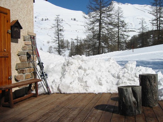 Un gros travail, entrepris par Bernard et Jean, fut de déblayer la terrasse. Des montagnes de neige... qu'on peut voir sur la photo ci-dessous.