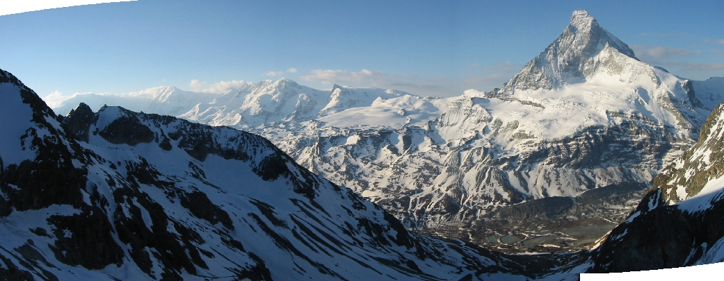 Le spectacle est bien sûr la Dent Blanche qui nous dévoile sa face Nord et l'Ober Gabelhorn, une face glacière qui domine devant le refuge. La balade classique, le Zinalrothorn, se cache sur l'Est (à skis, on peut accéder à l'épaule, 4017m).