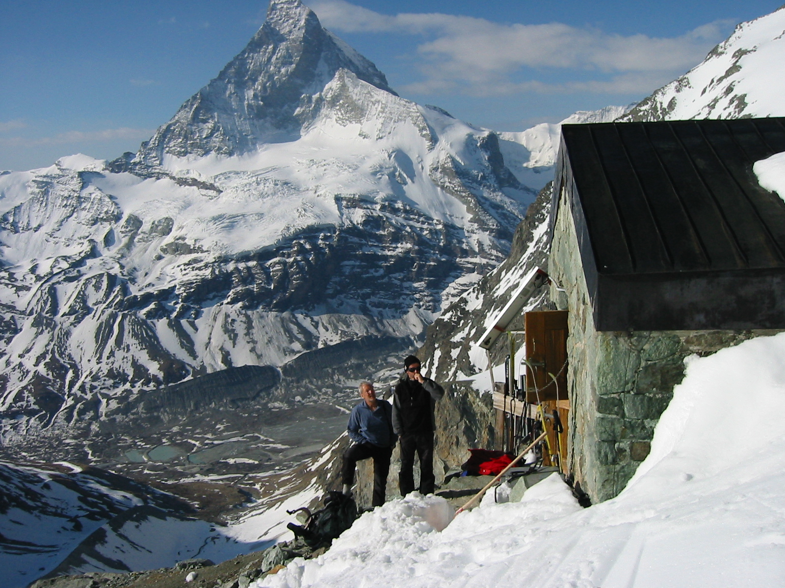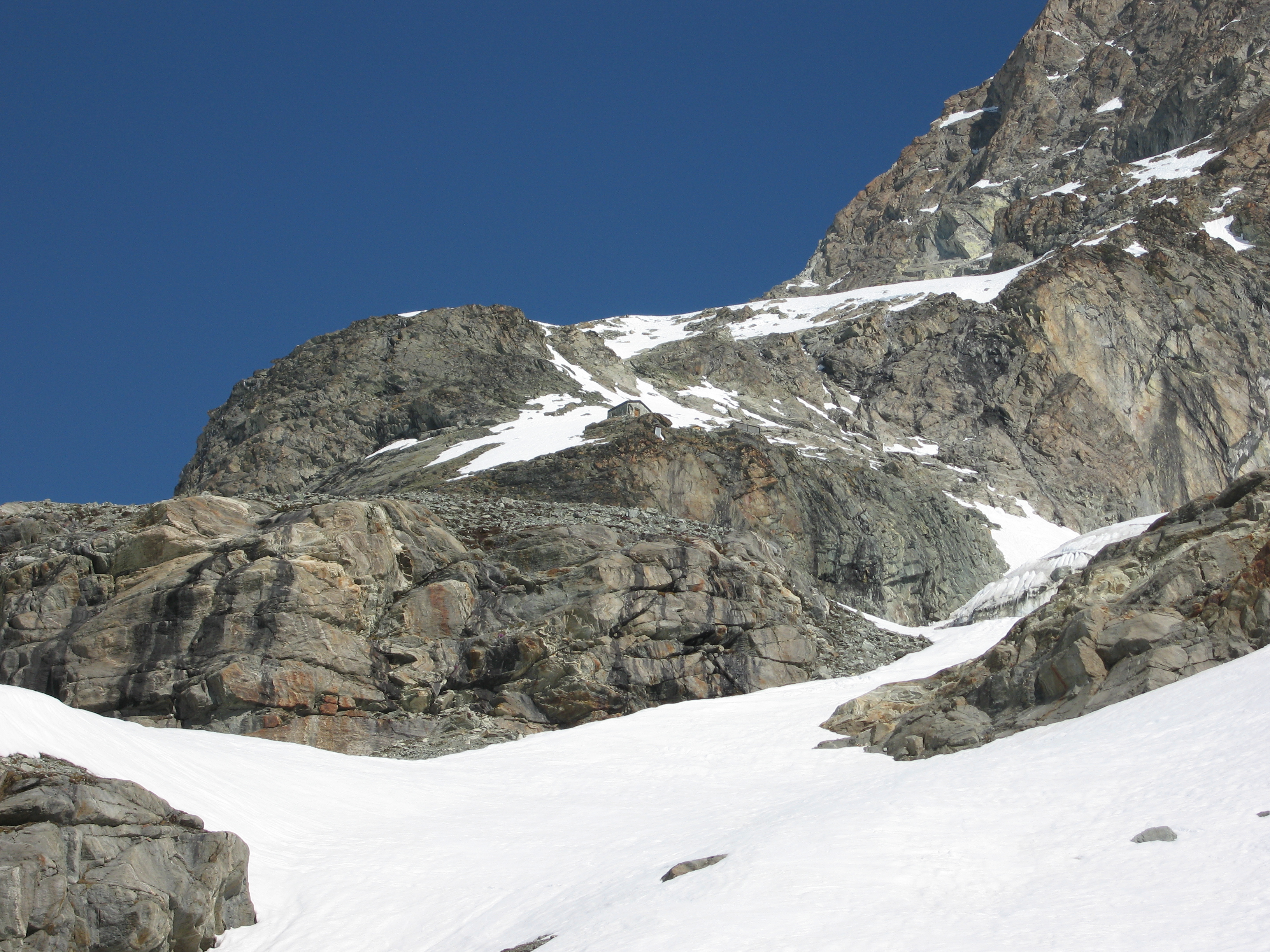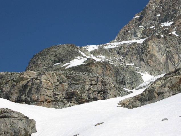 Ce cru 2007 fut excellent finalement, malgré l'enneigement très déficitaire (quasiment rien en dessous de 2700m). Nous avons court-circuité le refuge d'Aosta (qui nous aurait certainement servi des pâtes bolognaises!) à cause du temps qui se dégradait, mais aussi à cause du manque de neige.