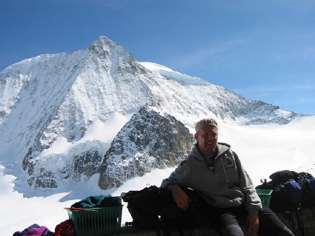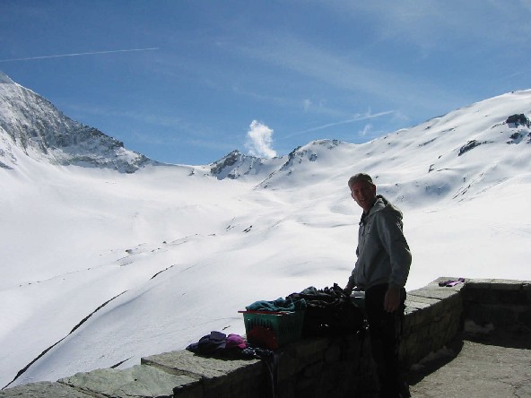 Le lendemain la montée au refuge des Bouquetins démarre sous les nuages, mais ceux-ci ne tardent pas à disparaître. Après avoir gagné le fond de la vallée d'Arolla, on rejoint l'immense glacier d'Arolla qui monte tranquillement sans se presser. Nous ne passerons pas le col du Mt Brulé qui permet de rejoindre Zermatt par le col de Valpelline, l'objectif étant la cabane des Bouquetins face au splendide Mt Brulé.