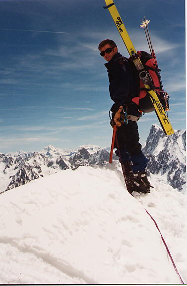 Le départ est toujours flamboyant et sur la photo, on voit Bertrand tout équipé pour affronter dans les meilleures conditions la descente de l'arête.