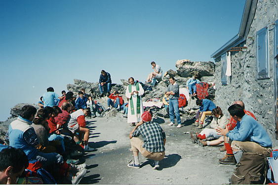 Au sommet, dominé par la statue de la Vierge, la vue plonge sur la plaine du Pô. Il y a une petite esplanade avec une chapelle et un petit refuge bien équipé (paillasses et couvertures, mais pas de chauffage).