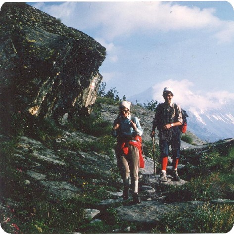 Ils s’engagent donc, mais très vite, ils s’aperçoivent que « ça ne marche pas »,la vieille dame, ne se sentant pas à l’aise, abandonne ! …Et c’est ainsi que je redescendis du glacier de La Réchasse, avec deux compagnes dont l’une avait mal au genou et l’autre mal au dos (elle s’arrêtait de temps en temps, s’étendait par terre pour faire quelques mouvements d’assouplissement), mais qui trottinaient gaîment !…Elles m’ont raconté leurs exploits : la plus intrépide avait fait l’Aiguille de la Vanoise, en solitaire, à 19 ans. Maintenant, elles continuaient à marcher beaucoup, elles étaient habituées aux Grands Tours (Tour du Mont Blanc, etc…). Nous avons salué, au passage un joli petit furet qui bondissait dans la prairie.
